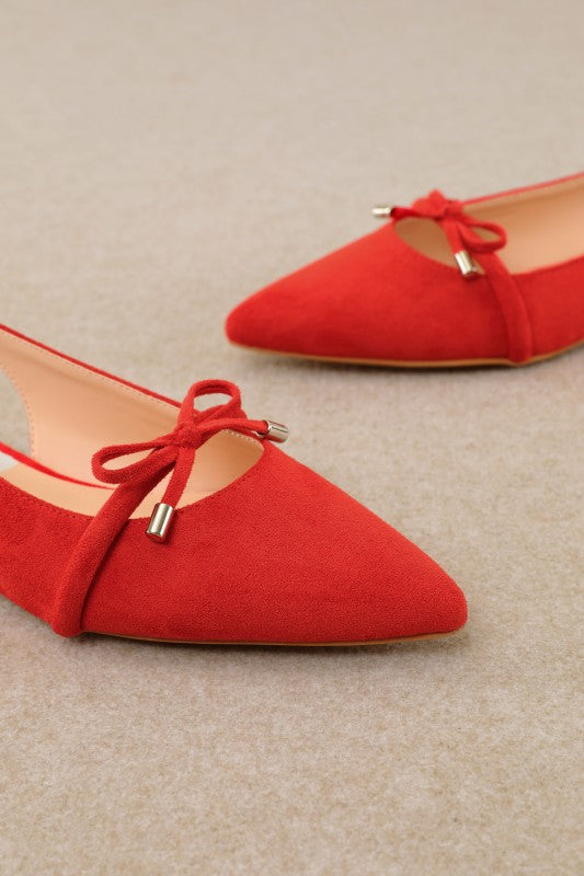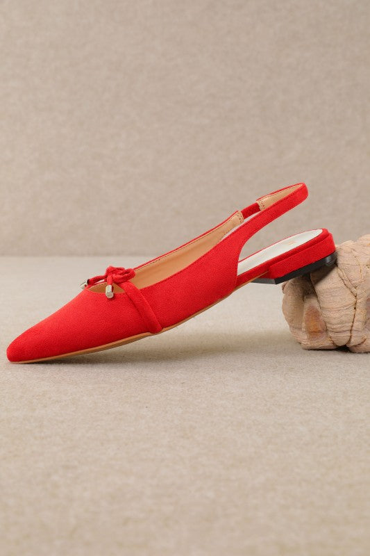 PARDINA is making a pointe. Slingbacked, pointed toe and finished of with a metal capped bow, these flats are the perfect blend of balletcore and corporate chic.