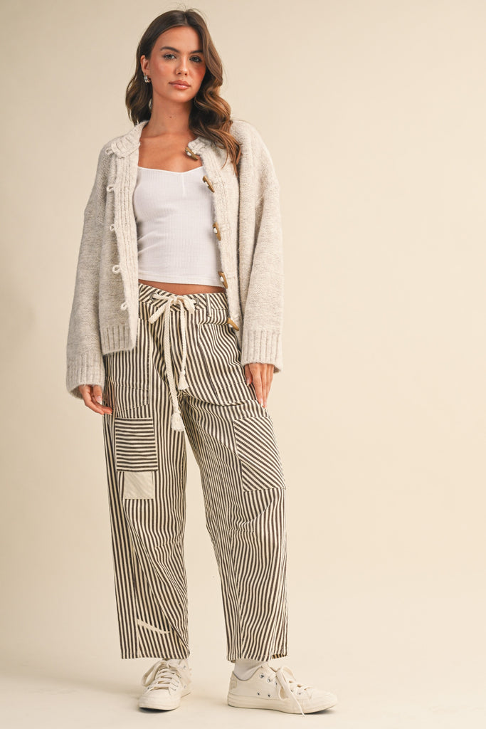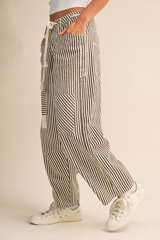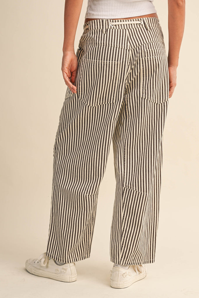 Stripes meet structure in these fun tapered barrel pants, complete with statement patch pockets that add personality to your everyday rotation. The relaxed fit through the hip transitions to a sleek taper at the ankle, creating a flattering silhouette that works whether you're dressing up or keeping it casual. Perfect for anyone who refuses to compromise on style or comfort.