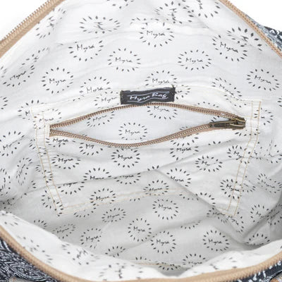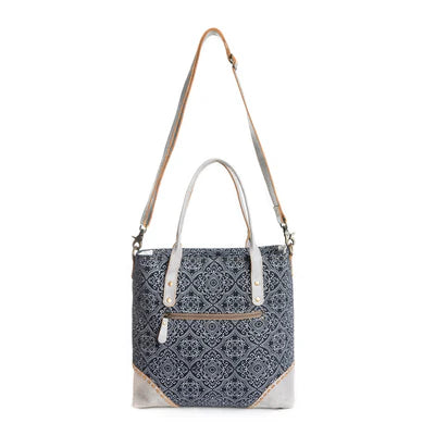 Elevate your everyday style with this chic upcycled canvas tote. Featuring a stunning black and white geometric pattern on durable canvas, accented with luxe leather trim. The versatile shoulder strap and handles offer multiple carrying options. Zipper-close top with detachable, adjustable shoulder strap and carrying handles in matching leather. Eco-friendly and fashion-forward, it's the perfect blend of sustainability and sophistication for the modern woman.