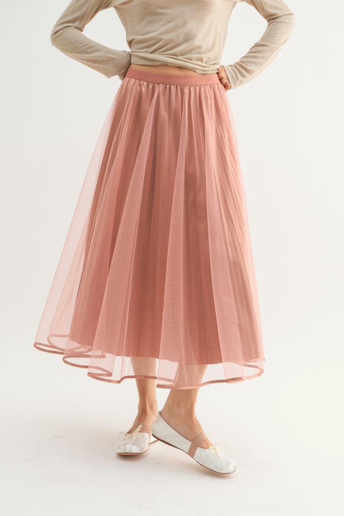 A fun and flirty rose gold tulle skirt with a comfy elastic waistband and full lining for easy wear.