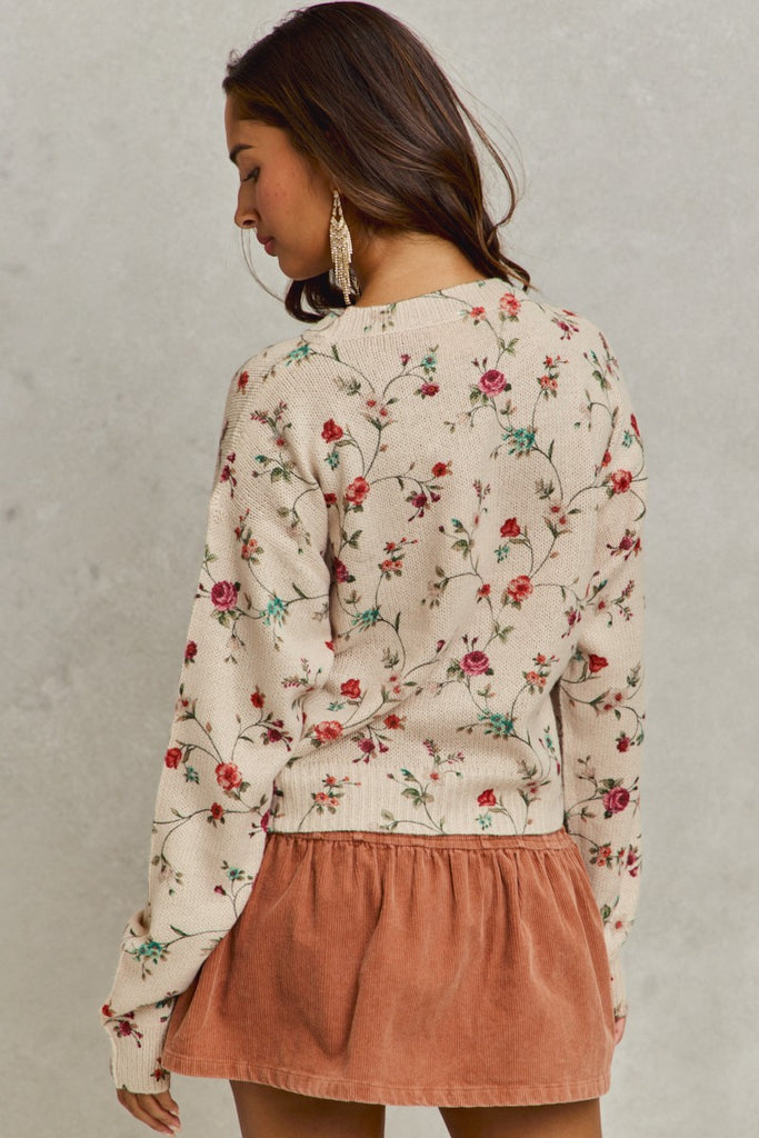 Cheerful floral sweater with a comfy crewneck—your go-to piece for effortless style and warmth!