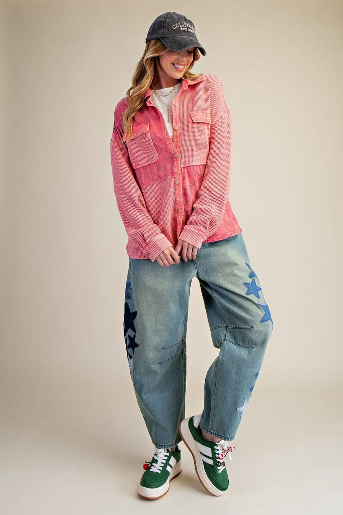 Button-Down Thermal Top Rock that cozy-cool vibe with this washed thermal top. Features a relaxed, boxy fit, waffle knit texture, and fun bandana-style print. Chest pockets make it as practical as it is playful.